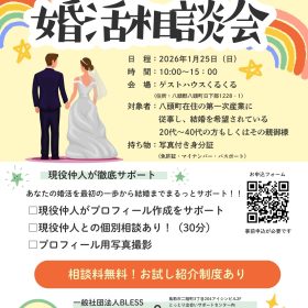結婚したいのにうまくいかない。その理由は人それぞれです。だからこそ、個別にじっくり話す時間が大切です。この相談会では、現役で多くの成婚を支えてきた仲人が、あなたの状況を丁寧に聞きながら、これからの婚活に必要なアドバイスを具体的にお伝えします。「どうしたら結婚できるのか?」を一緒に考える時間、つくってみませんか?